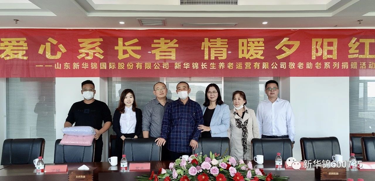 山东新华锦国际股份有限公司、新华锦长生养老运营有限公司负责人代表新华锦上市公司向石岛社会福利院捐赠摇粒绒毯380条,向老人致以亲切的问候与诚挚的祝福,介绍了新华锦集团、新华锦国际十年来对医养产业的恒心和持续投入,围绕敬老助老积极践行企业社会责任、开展公益活动的举措,并重点回顾了新华锦长生运营在全国范围内开展以轻资产运营为主的养老管理输出的经历。